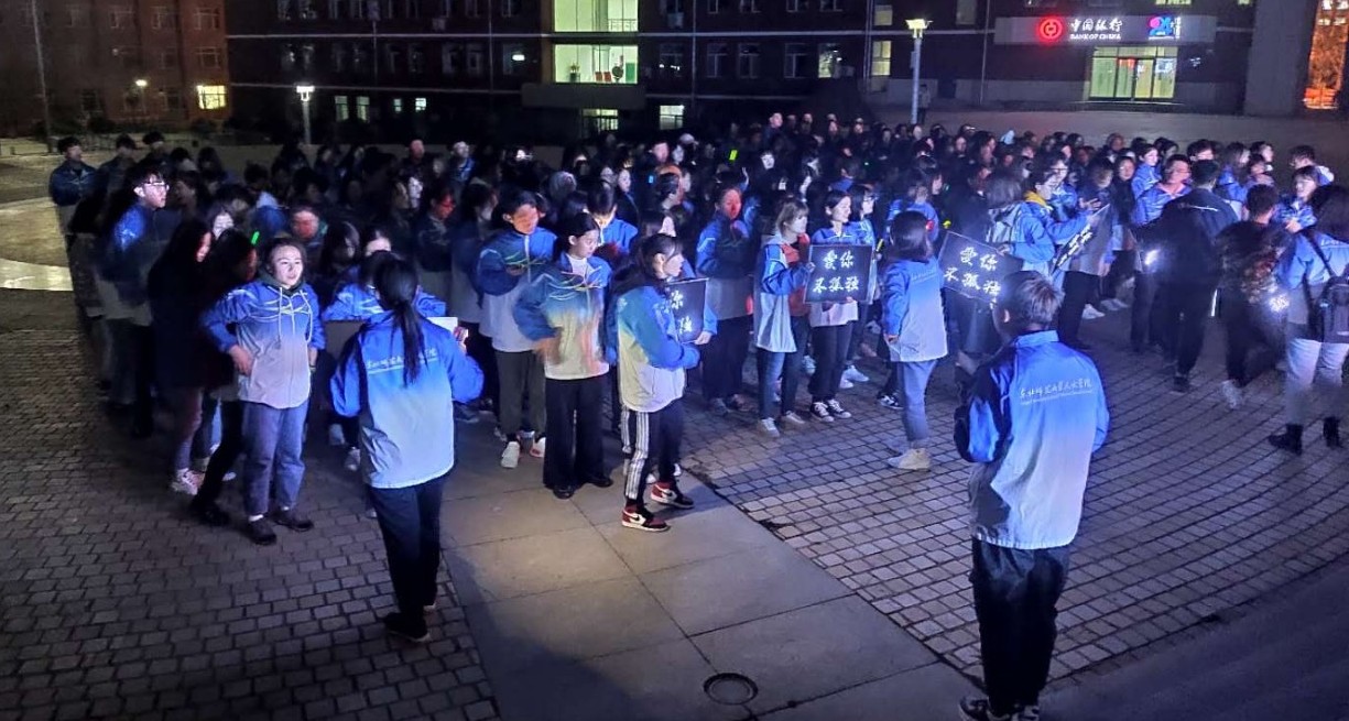 當夜幕降臨,同學們齊聚廣場,手持熒光棒,舉行星空夜跑活動,整個校園在燈光的映襯下閃閃發光,同學們的愛心在為自己發聲,也在為每個自閉癥的兒童發光發熱!